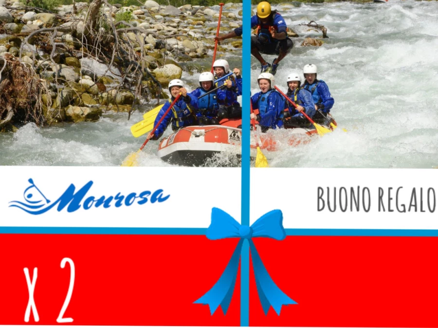 Buono per una discesa fluviale a scelta tra rafting e canyoning percorso Gole del Sesia, valido per due persone. Il buono è valido un anno dalla data d'acquisto, previa prenotazione online, via mail o telefonica utilizzando il codice regalo presente sul voucher. L'attività scelta può essere effettuata sia in nei giorni feriali sia nei giorni festivi.